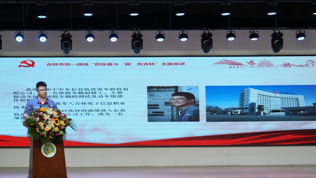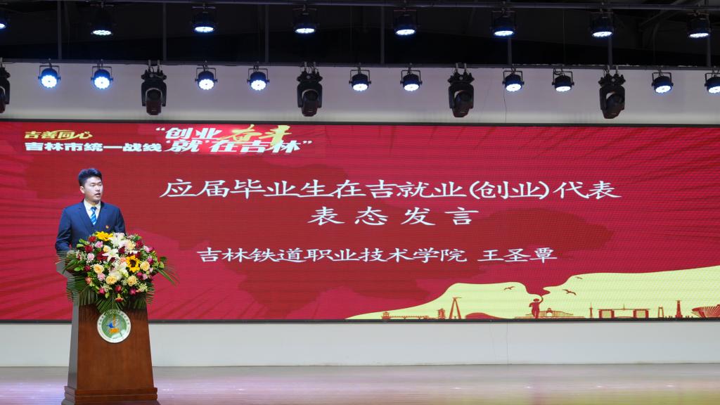 会上,王石红副市长与何晓杰书记为学校聘请的就业创业指导师颁发聘书,市人社局局长梁荣罡围绕就业观念引导、就业政策宣传、就业技能指导等方面进行专题解读。宗庆吉、王瑾、丁相庆、付春鹏4位宣讲嘉宾分别作为创业典型、就业典型、能工巧匠代表和大国工匠代表,为同学们讲述了他们在吉林市的创业奋斗、爱岗敬业故事,分享与吉林振兴发展同频共振的人生感悟,4位嘉宾的讲述引起现场同学们的强烈共鸣。吉林铁道职业技术学院王圣覃同学作为应届毕业生代表作表态发言。