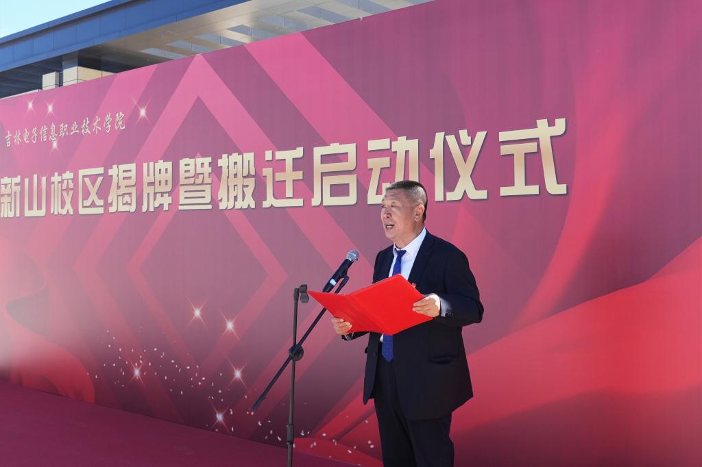 9月6日,学校举行新山校区揭牌暨搬迁启动仪式,学校领导班子全体成员及中层干部参加仪式,党委书记何晓杰、校长杨勇共同为新山校区揭牌。吉林省华兴工程建设集团有限公司总经理金仁鹤代表承建单位向校长杨勇交付“喜迁新址”钥匙。仪式由党委副书记石洪发主持。 党委书记何晓杰、校长杨勇共同为新山校区揭牌 华兴工程建设集团有限公司总经理金仁鹤代表承建单位向校长杨勇交付“喜迁新址”钥匙 党委副书记石洪发主持仪式 仪式结束后,在新校区明德广场举行了隆重的升旗仪式。入驻新山校区后,优美的校园环境、宽敞明亮的教室、设备齐全的实训室、舒适的学生公寓,为学生的学习和生活提供了全方位的支持,学生将享受到更加优质的教育资源。 升旗仪式现场 同时,新校区的建成和投入使用,在学校办学历程中具有里程碑意义,不仅极大改善了办学条件,拓宽了办学空间,也必将有力推动学校各项事业高质量发展再上新台阶。 新山校区图书馆 新山校区明德广场 (初审:孟令飞 复审:刘莹 终审:汤海涛)