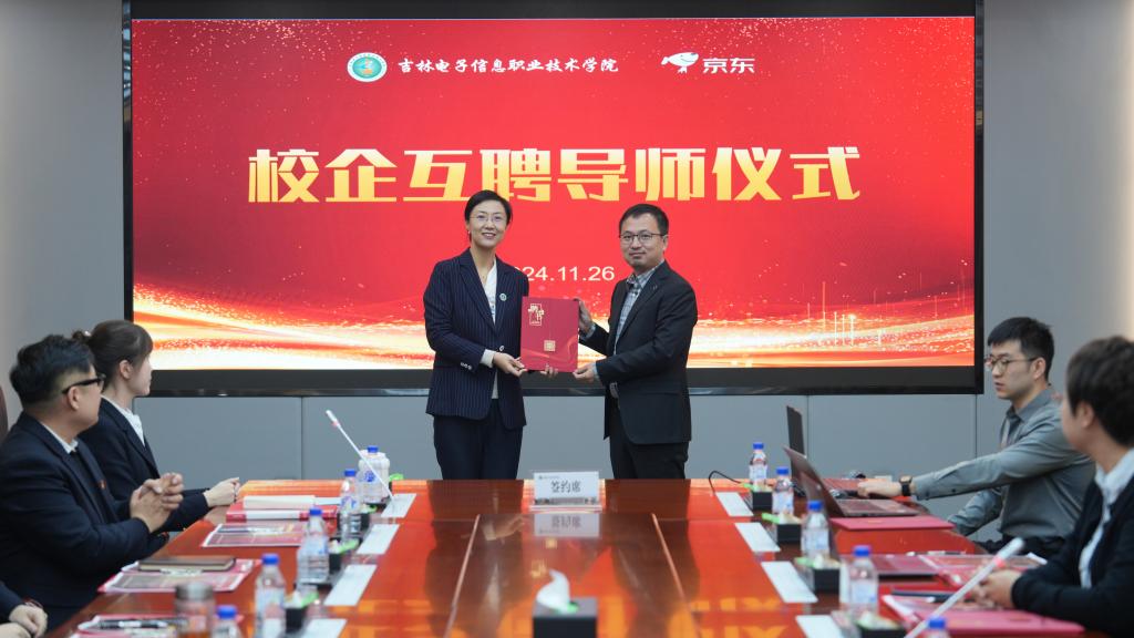 财经学院院长吕岩荣与京东物流集团教育业务部吉林省区经理贺宇代表校企双方郑重签订合作协议,共同开启数字商业教育的新篇章。